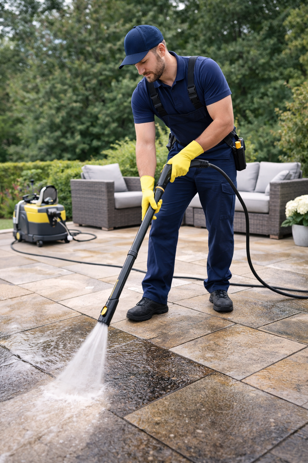 Nettoyage terrasse haute pression, élimination mousses, saletés et traces pour un extérieur impeccable.