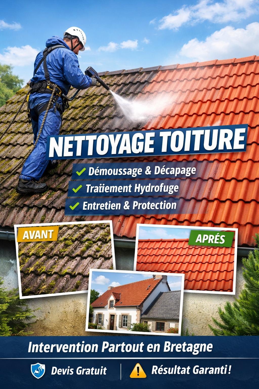 Démoussage et nettoyage toiture, traitement préventif pour prolonger la durée de vie de votre toit.